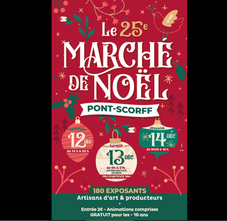 12 Déc 2025 Marché de Noël de Pont Scorff le 12 et 13 décembre 2025 Posté dans : Exposition, Information et Création | Marché de Noël de Pont Scorff le 12 et 13 décembre 2025